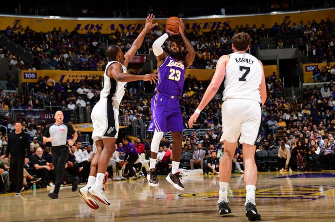 只是湖人被马刺出色的三分火力压制,上半场湖人已经58-70落后马刺12分差距。更为悲催的是,湖人在下半场继续被马刺压制,詹姆斯哪怕后两节继续率队反扑成功达成两双数据,却难阻湖人逐步被拉开20+落后差距。